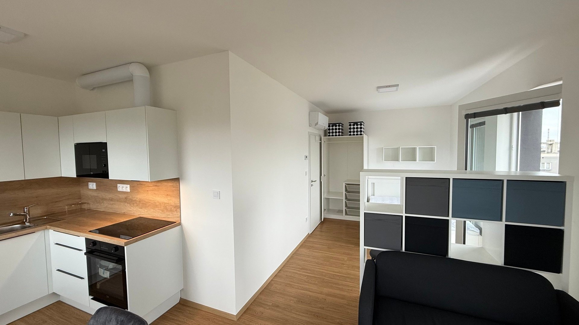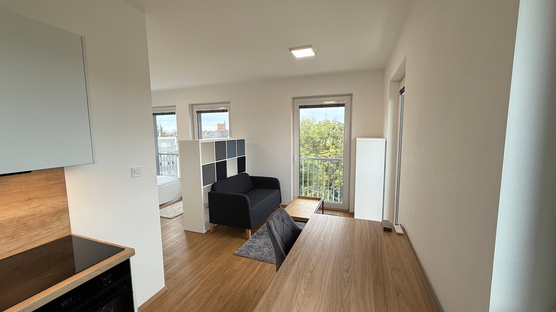Nabídka pronájmu zcela nového, moderního a plně vybaveného bytu 1+kk, o podlahové ploše 32 m2, s velkými francouzskými okny, klimatizací a sklepem v suterénu bytového domu, v rezidenci Čechova, v samotném centru Přerova.